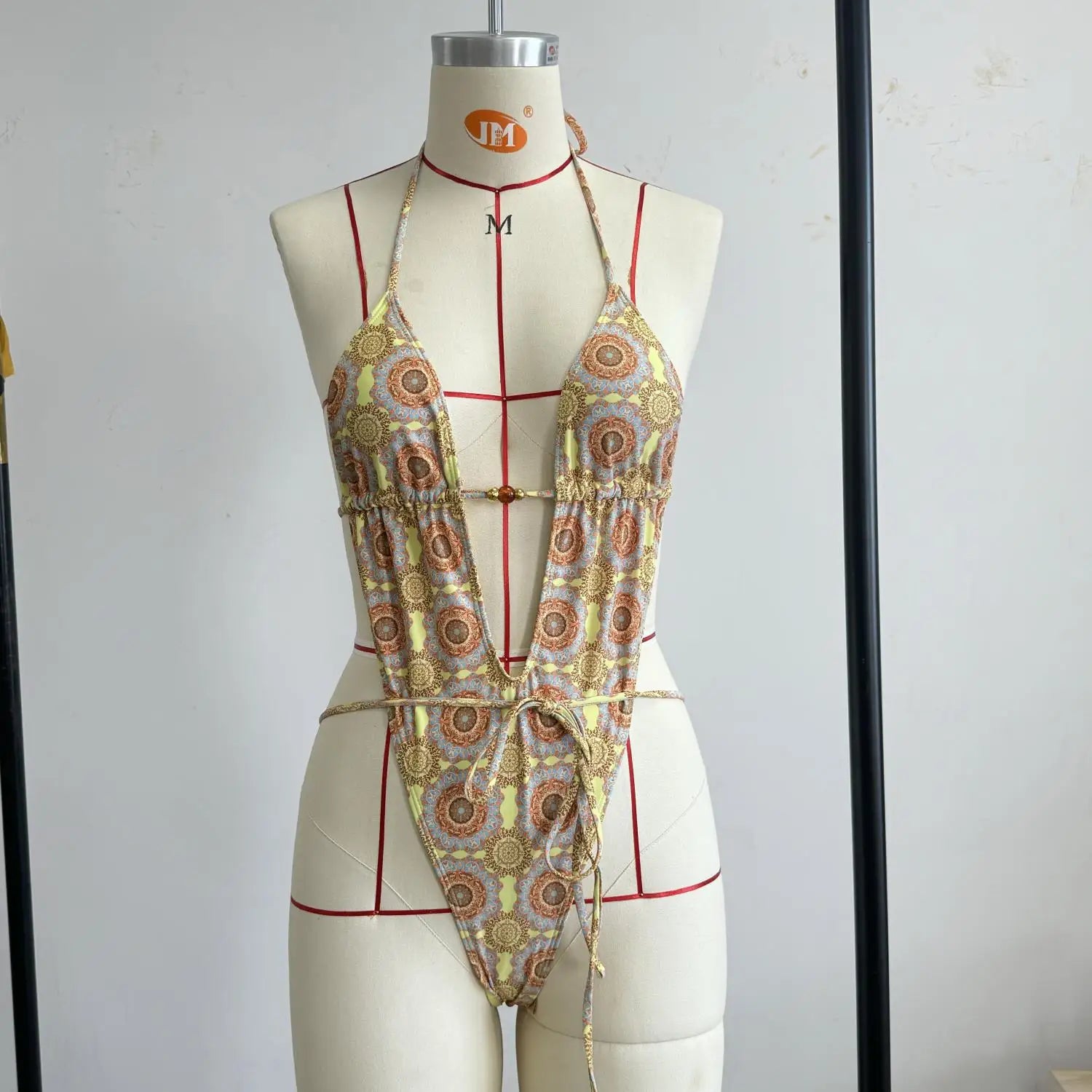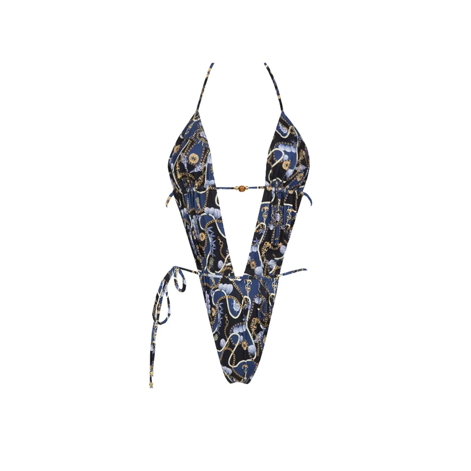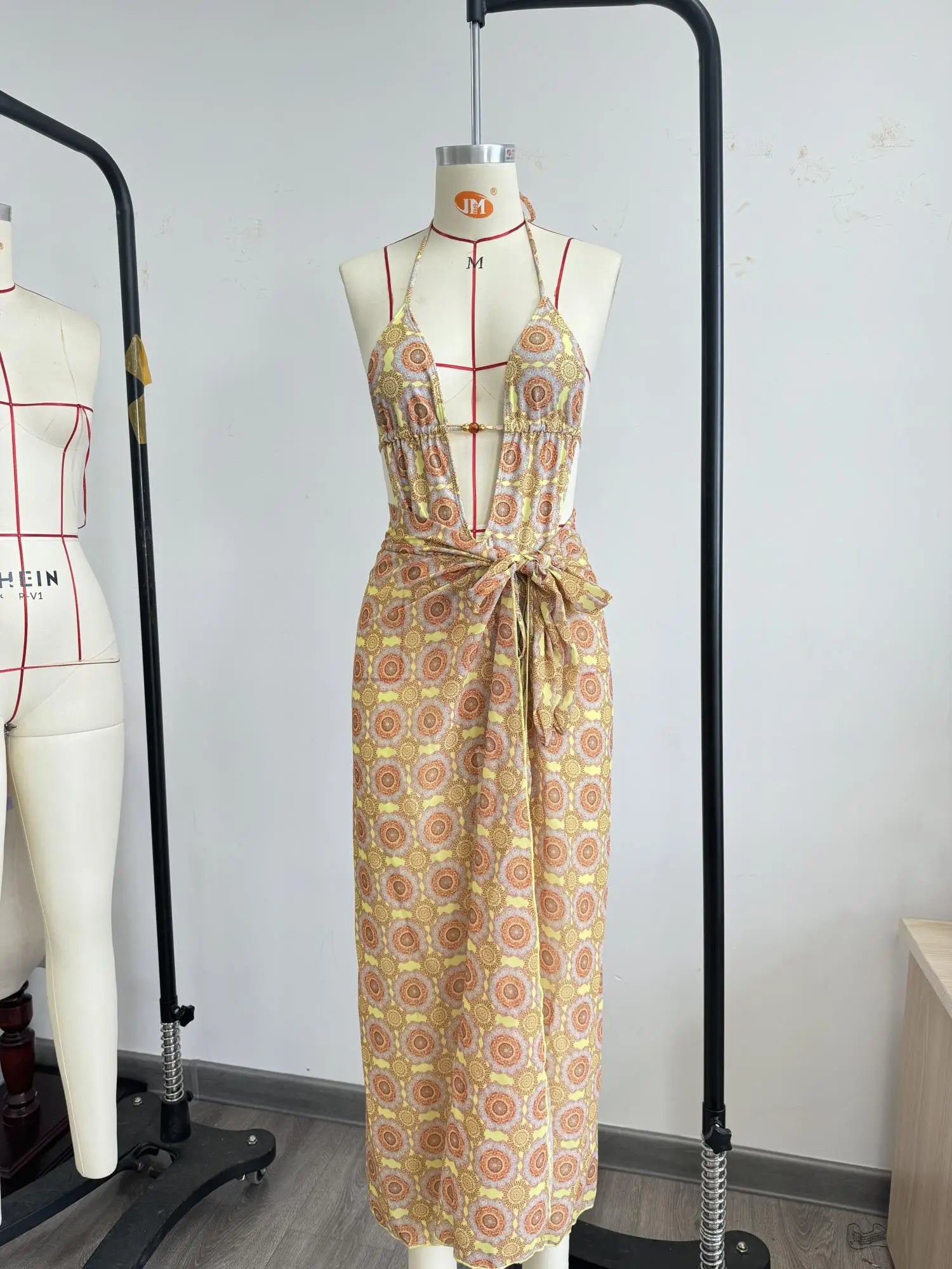 2025 New High Quality Elegant One Piece Swimsuit And Skirt Print Deep-V Lace-up Women Bikini Set Swimwear Party Bathing Suit