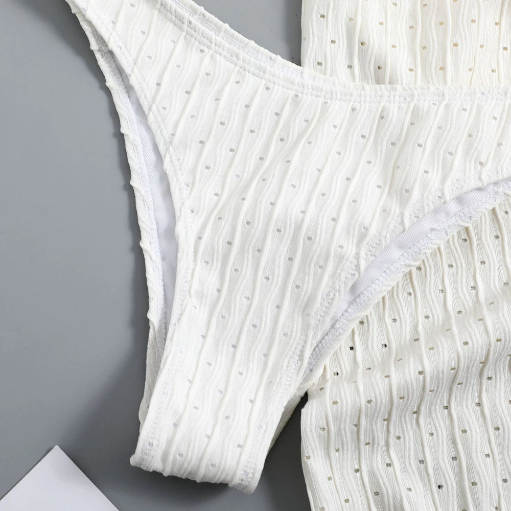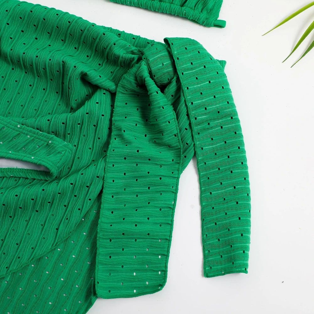 2025 Summer Halter Bikini 3 Pieces Women Special Material Sexy Thong Swimwear With Sarong Skirt White/Black/Pink/Green Beachwear