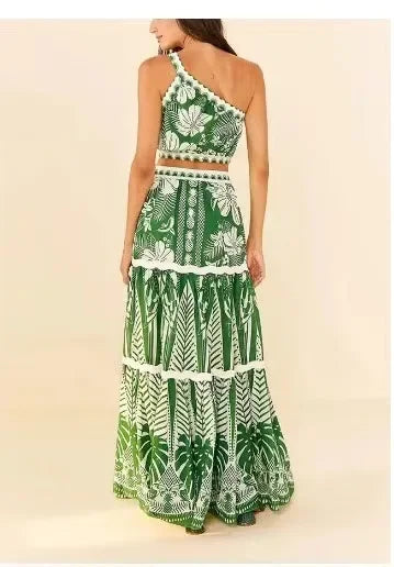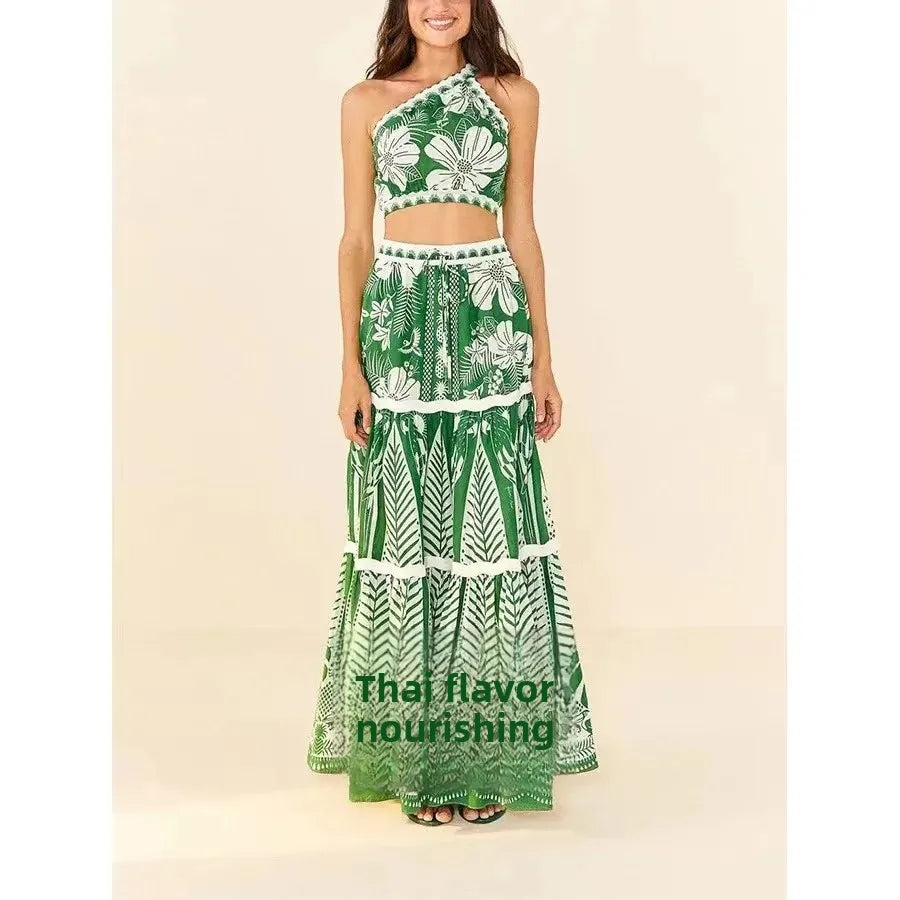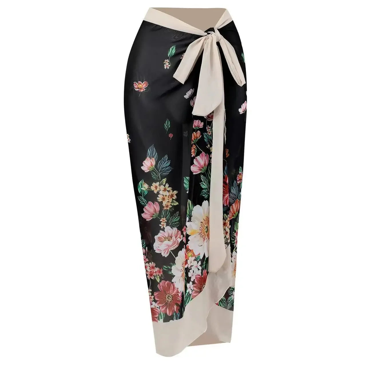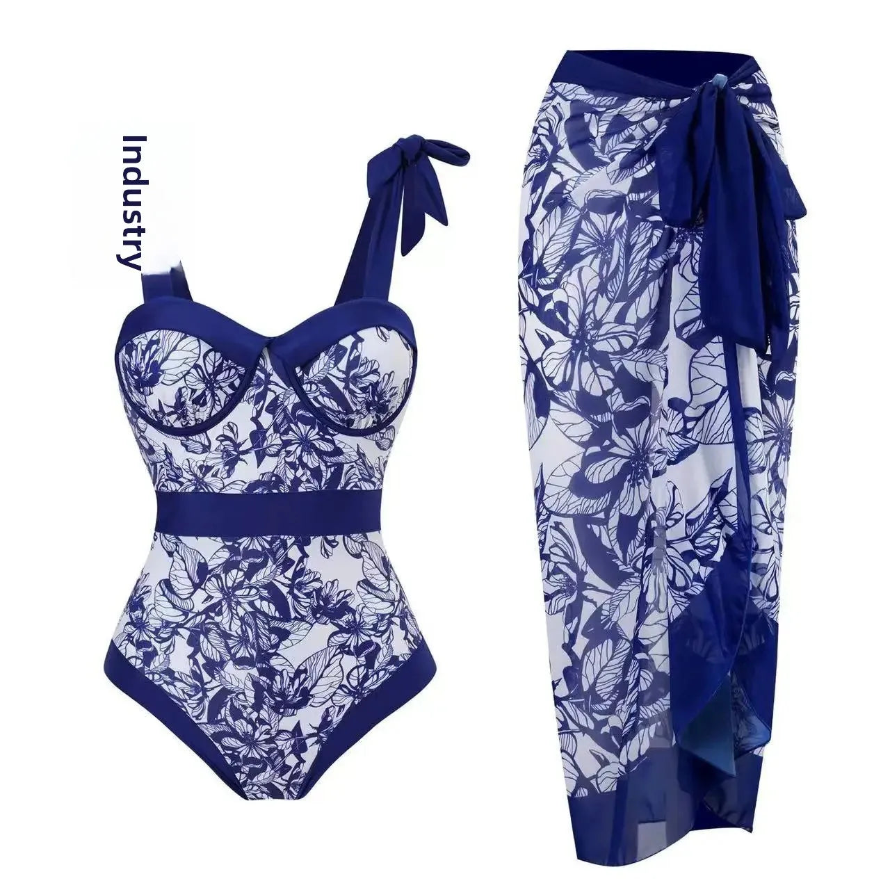 Conservative Bikini One-Piece Swimsuit with Beach Skirt Shantung Wrap for Hot Springs Women's Fashion Swimming Costume