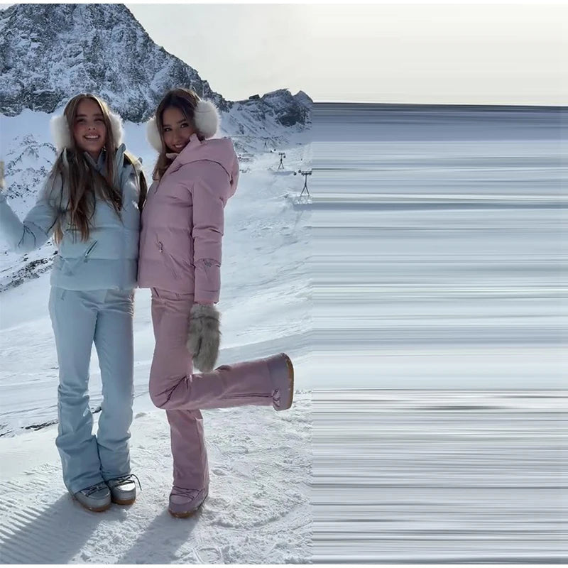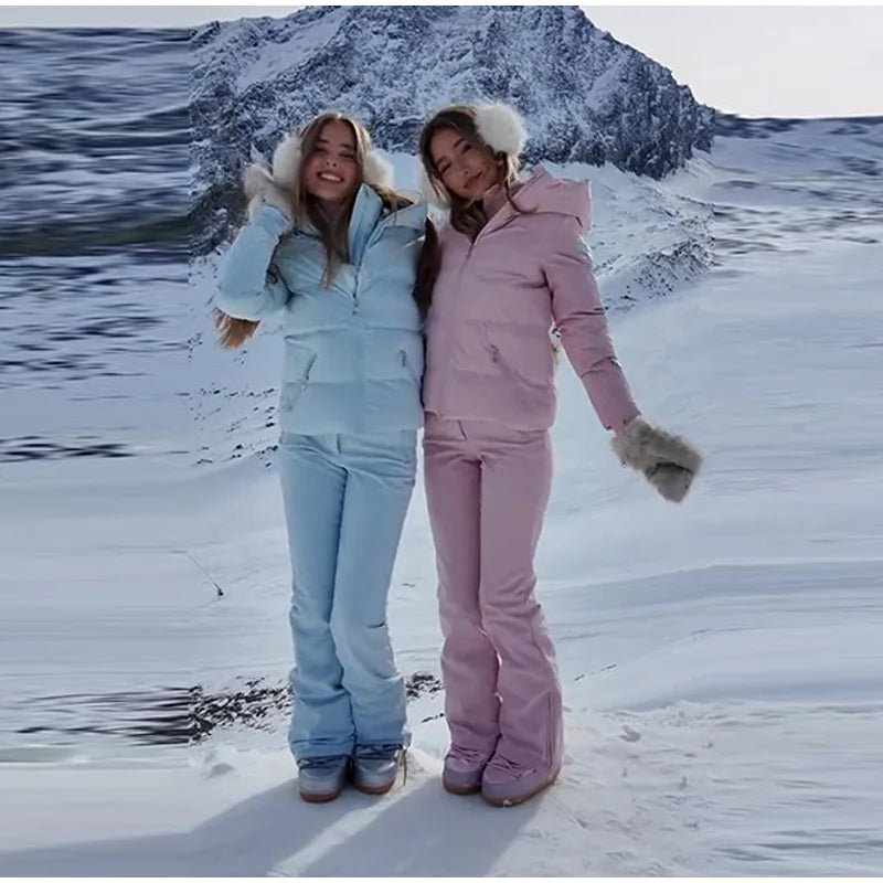 Cotton Ski Women's Winter Jumpsuit Sets Zipper Loose Jacket Straight Pants Suits Skiwear Snow Commute Street Outdoors Romper