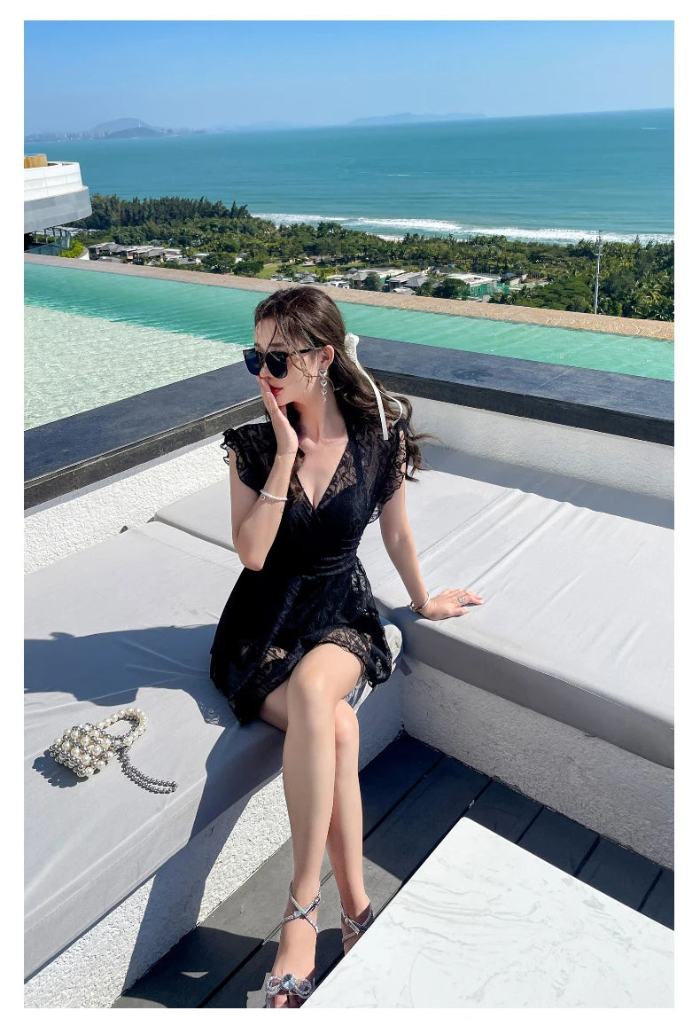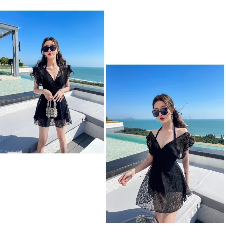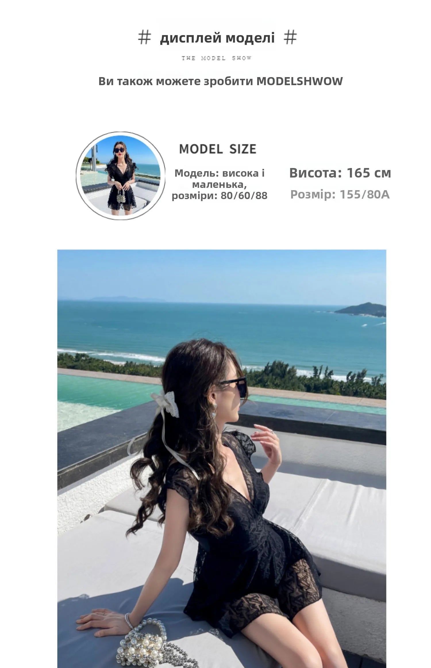 Ele Lace One-Piece Swimsuit Women's High Waist Brief Svel Slimming Thermal Bathing Suit Casual Color Swimwear