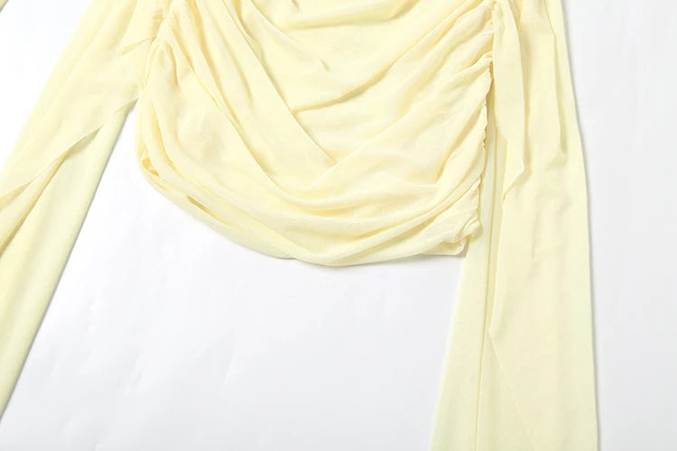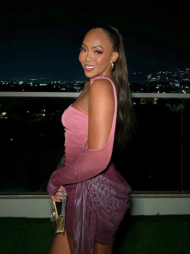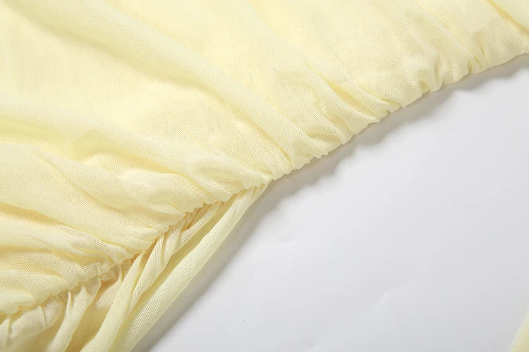 kliou Mesh Simple Women Mini Dress Fashion Solid Strapless Ribbons Tassel Body-shaping Vestidos+Seperately Full Sleeve Gloves