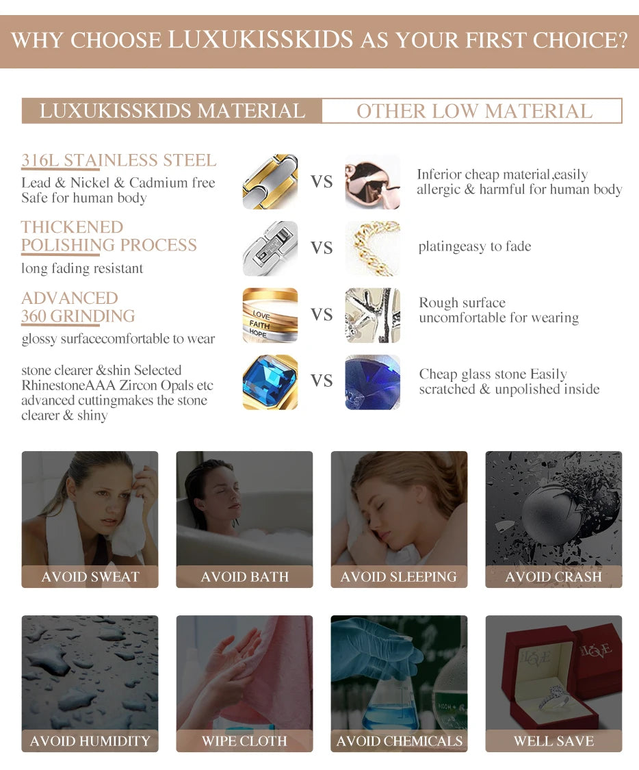 LUXUKISSKIDS Fashion Cubic Love Heart Minimalist Jewelry Set Necklace Earrings Bracelets Stainless Steel Women/Girls Accesories