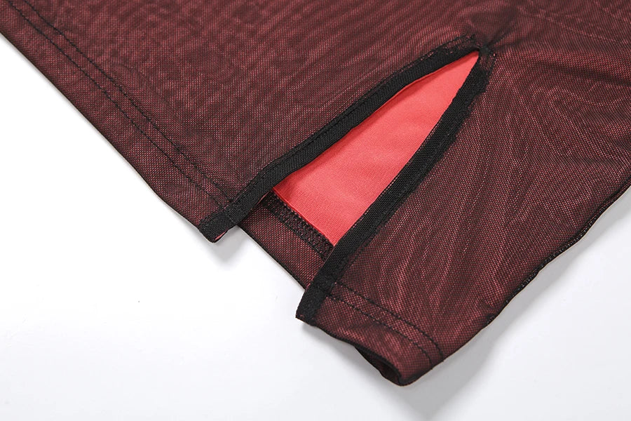 Mesh Double Layer Sexy Skinny Dress Women Sleeveless Party Bodycon 2024 Bandage Elastic Split Trend Clubwear Slim Outfit