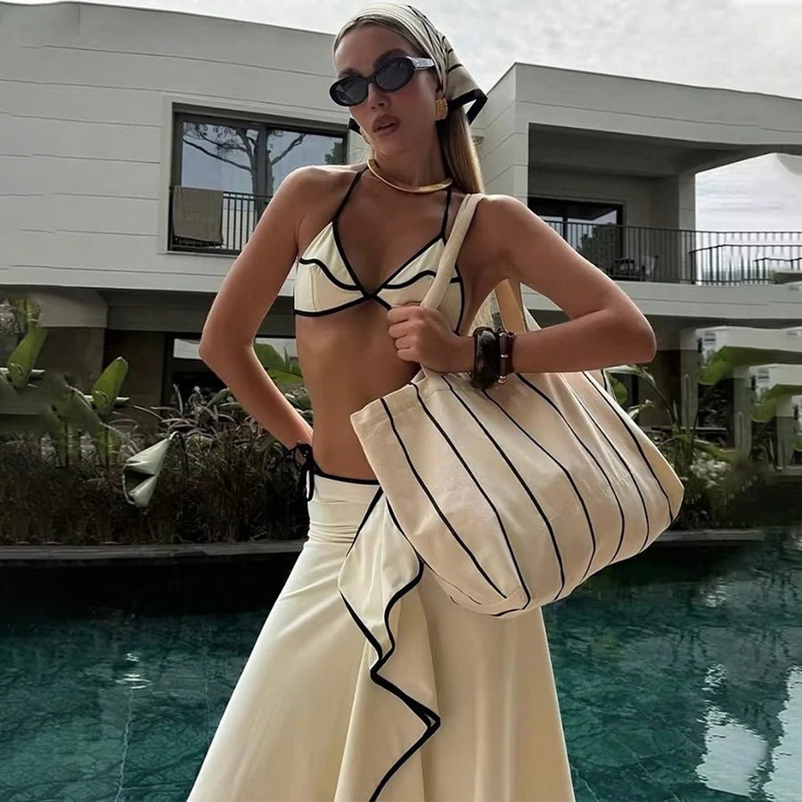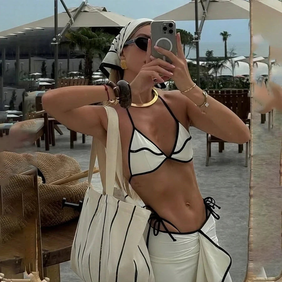 Para Praia Print Three Pieces Bikini Set with Long Skrit 2025 Swimwear Women Sexy Swimsuit Beachdress Bathing Suit Outfits