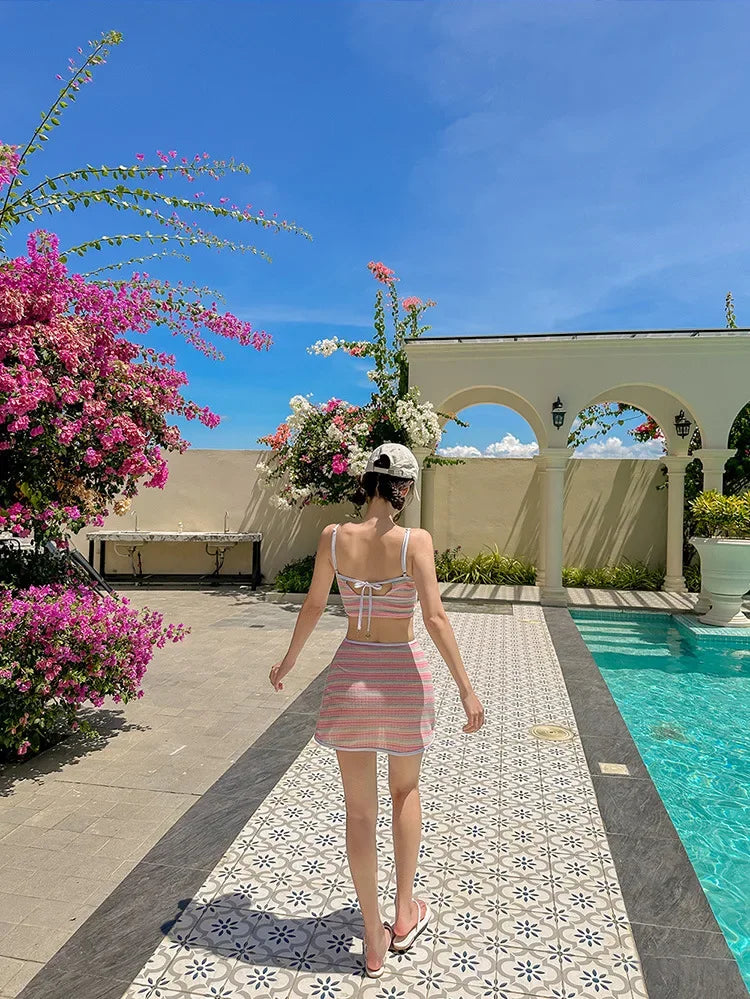 Retro Striped Bikini Set Women's Fresh Style Skirt Type Separate Swimming Suits Chinese Brand Summer Beachwear Swimwear