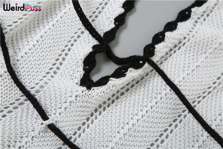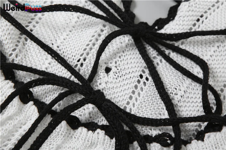 Weird Puss Sexy Elegant Halter Dress Women Summer Backless Lace-Up Color-Block Sleeveless Trendy Nightclub Wild Fashion Clothing