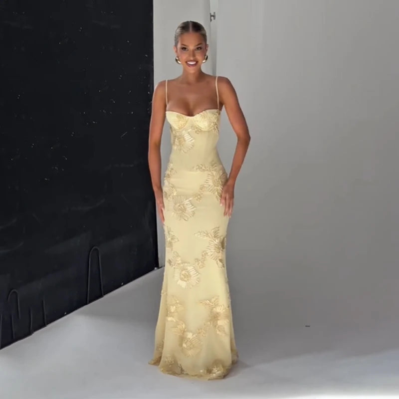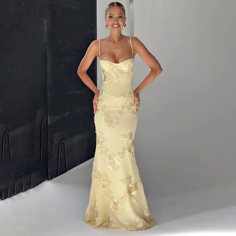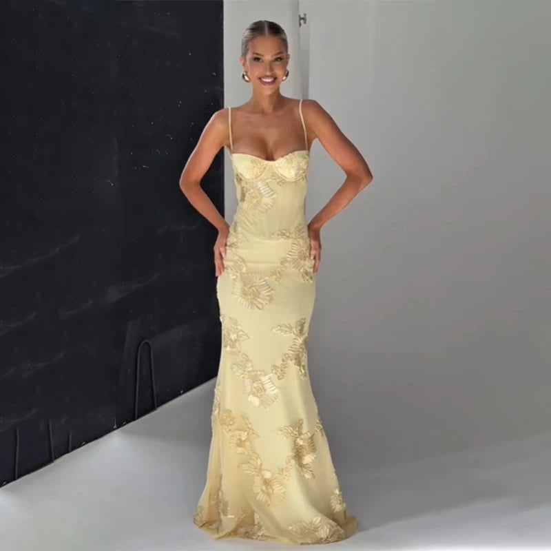 Women Elegant Printed Long Dress Chic Back Lace Up Slim Fish Tail Pendulum Sling Robes 2025 New Lady Party Club Evening Gowms